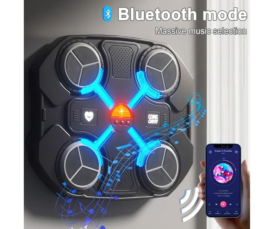 Esta máquina de boxeo musical está diseñada para proporcionar un entrenamiento completo y emocionante. Cuenta con cuatro colchonetas de golpeo ubicadas estratégicamente, las cuales están hechas de espuma de alta densidad para una experiencia de entrenamiento realista y duradera. Su diseño compacto y ergonómico permite un fácil montaje en la pared, ahorrando espacio en tu hogar o gimnasio.